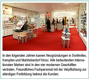 1987 werden die Geschäftsräume getauscht und die Parfümerie zieht in die jetzigen Räume. Im gleichen Jahr noch übernimmt Hanns-Jürgen Lüdicke, der inzwischen der Einzelhandelsgruppe Aurel angehört, eine Filiale in Sonthofen, 1990 in Kempten.